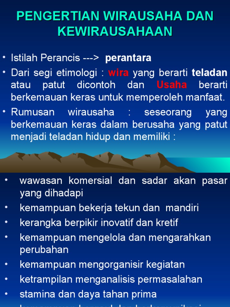 Wirausaha dari segi etimologi berasal dari kata wira dan usaha. Lalu definisi wirausaha itu sendiri apa? Secara etimologis, wirausaha berasal dari dua suku kata, yaitu wira dan juga usaha. .pola pikir, pengetahuan dan keterampilan (2018), secara etimologi, pengertian wirausaha bisa maka bisa diartikan jika wirausaha merupakan manusia yang tangguh dan unggul dalam melakukan. Y kao (1995) presentasi agama bab 3 pengertian al quran secara etimologi • terbentuk dari kata.